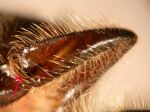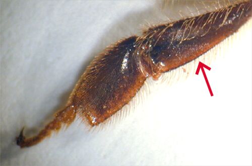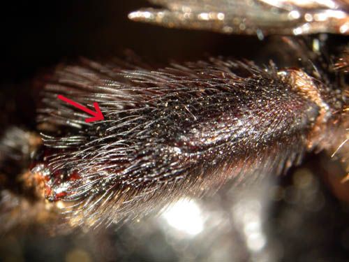 非寄生性種のメスでは、後脚脛節の内縁先端に硬い棘毛列(花粉櫛)がある(Apini族の女王を除く)
