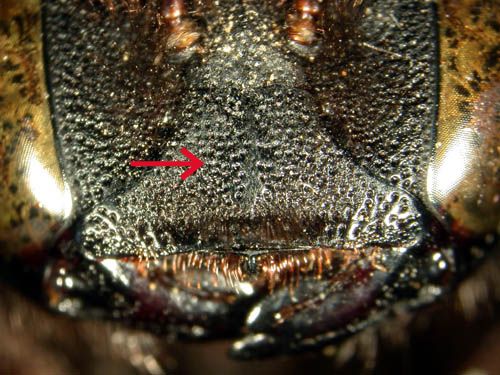頭盾の形は変異があるが、盛り上がり、下部側面は後方へ曲がる