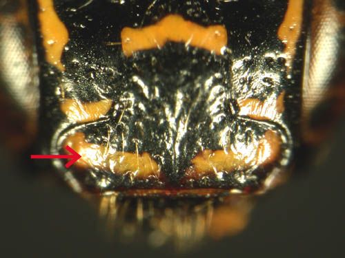 頭盾はほとんど平らで、下部側面は後方へ曲らない