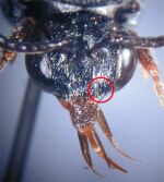 拡大画像 | 頭部上唇の基部側面の角張りは小さい.頭盾との関節は狭く、基部は上唇の最大幅よりも狭い.上唇の形はしばしば三角形、先端は丸く通常横長 | ![]() |