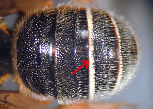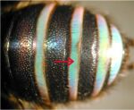| Marginal zones of T2 to T4, and often also T1, except near bases, hairless impunctate, usually opaque white yellow, green, or blue | ![]() |