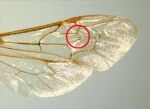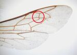 前翅の第1亜前縁室の横脈は縦脈と直角に接し、第1逆走脈の近くに位置する